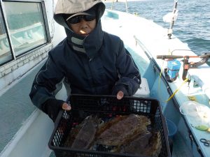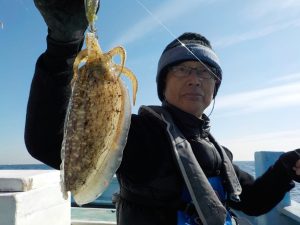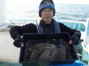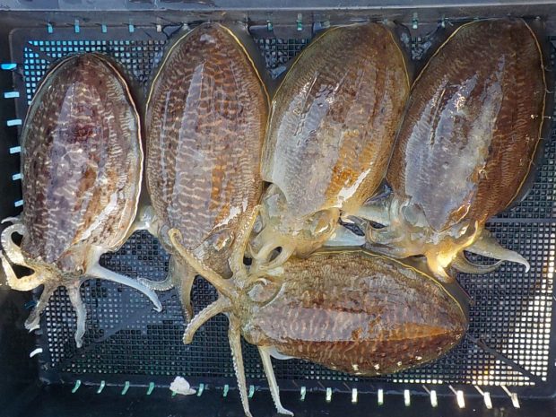 本日は良型コウイカ5匹を筆頭に乗船者全員にコウイカの配当有りました。